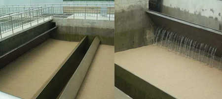 砂濾池是在曝氣池的基礎(chǔ)上發(fā)展起來的,砂濾池的工作原理是污水通過砂濾后,使水中的固體顆粒被攔截而排出體外,從而達到過濾水要求,達到水排放標(biāo)準(zhǔn)。