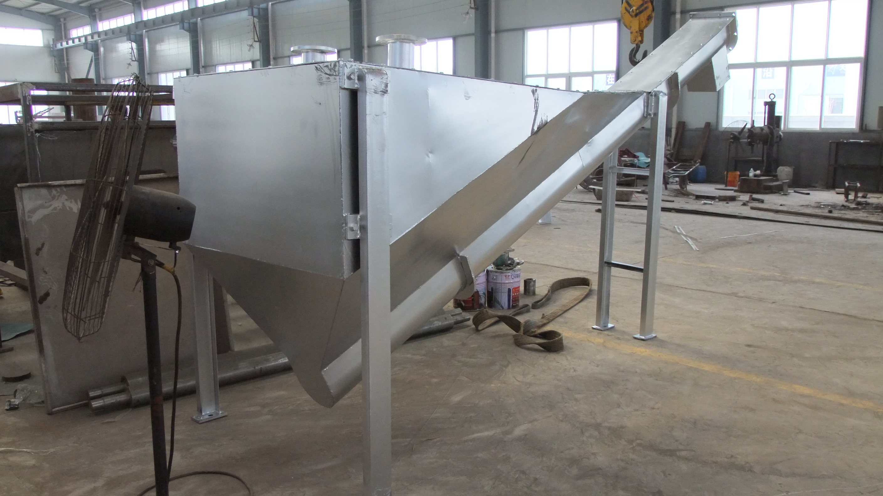 砂水混合物從分離器一端頂部輸入水箱,混合液中重度較大的,如砂粒等將沉積于槽型底部,在螺旋推動下,砂粒沿斜置的槽底提出升,離開液面后繼續推移一段距離,在砂粒充分脫水后經排砂口卸至盛砂桶,而與砂水分離后的水從溢流口排出并送往廠內進水池。