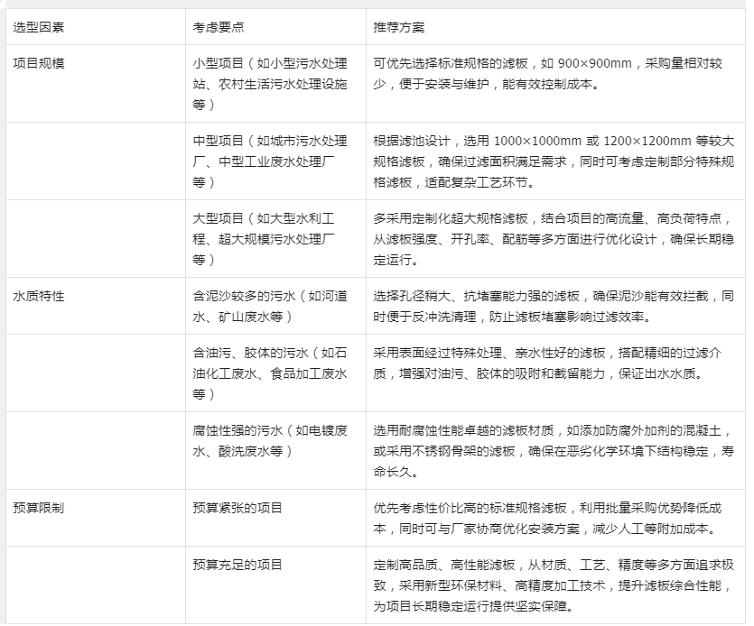 我們還精心準備了一份選型參考表,詳細列出了不同規格、材質、開孔率的預制混凝土濾板及其對應的適用場景、性能特點、價格區間等信息,方便您一目了然地進行對比和選擇。如有任何疑問,歡迎隨時聯系我們的專業銷售團隊,我們將竭誠為您提供一對一的精準選型建議。